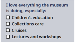 - Another approach may be to give the donor the opportunity to express their interest, rather than designating their money, as shown here: Museum.